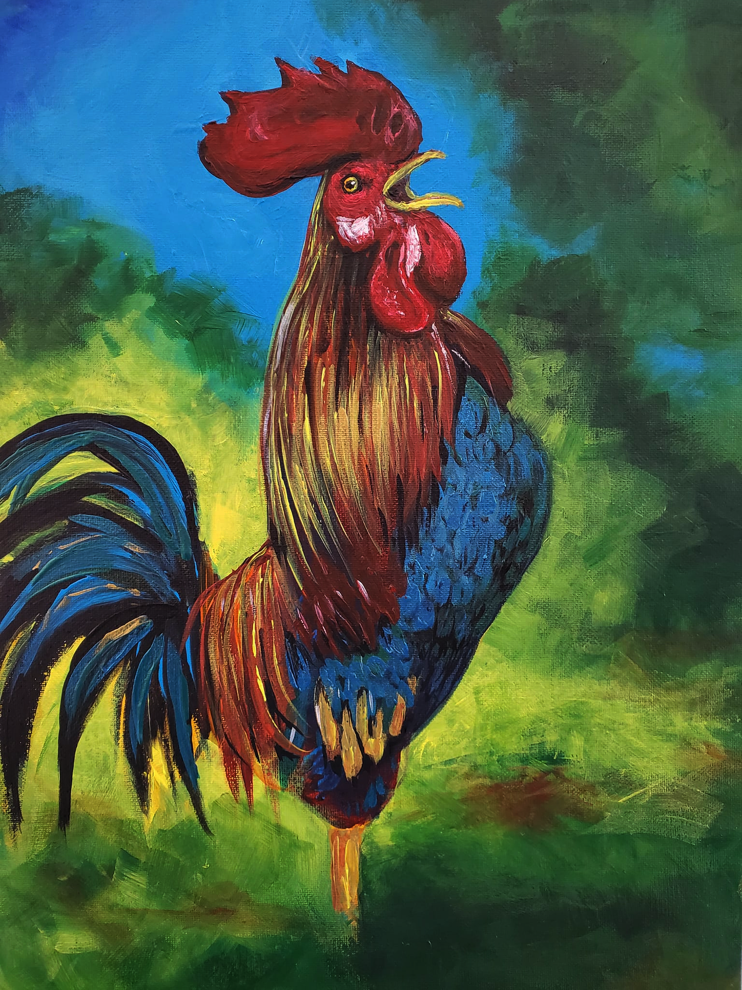 Always on guard! This colorful crowing rooster is a 3 hour workshop.