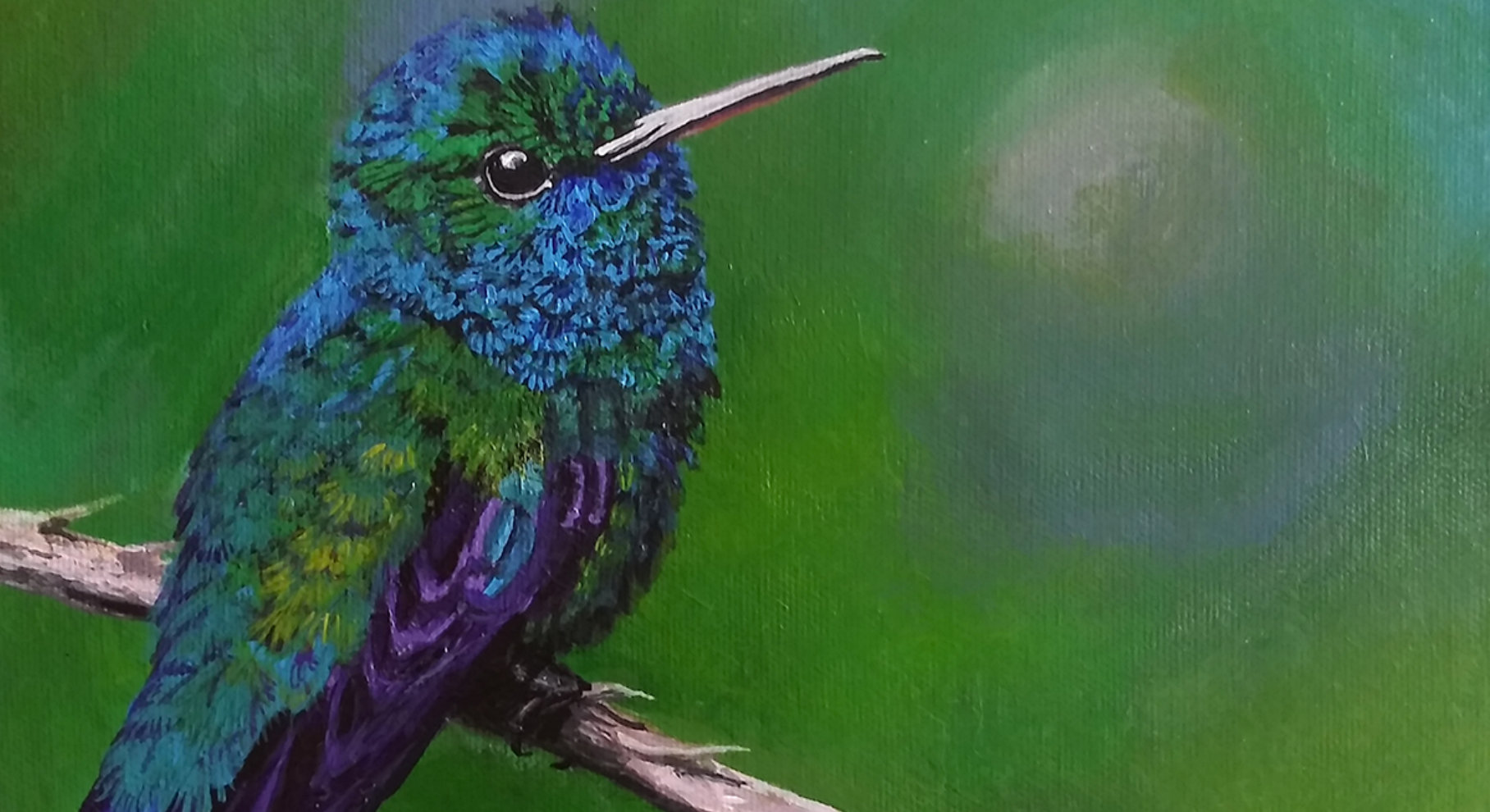 This beautiful little hummingbird painting is a 3 hour workshop.